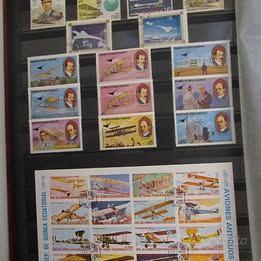Lotto di francobolli di parecchie nazioni con rappresentati aerei. Tutti i francobolli sono in un album con 30 pagine (60 facciate) di dimensione 30 x 23 x 5 compreso nell'offerta.