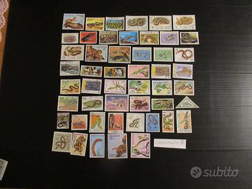 Lotti di 50 francobolli mondiali con rappresentati - serpenti3 - bandiere - sport con palla 3 - castelli 3 – Italia - costumi