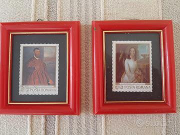 Collezione francobolli italiani e esteri nuovi, incorniciati singolarmente con gancetto per appenderli.