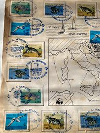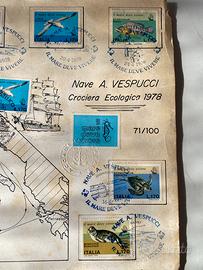 Francobolli crociera ecologica Amerigo Vespucci 1978 con timbri oroginali del tour e accademia navale