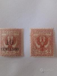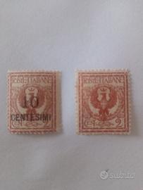 francobolli regno d'Italia del 1901 nuovi, raffigurante l'aquila imperiale, il primo ha una soprastampa di 10 centesimi difficile da reperire