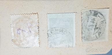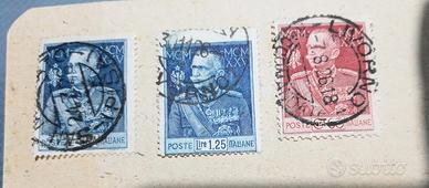 tris di francobolli raffiguranti il re vittorio emanuele III denominati " il giubileo del re " .....con timbro postale a vista :