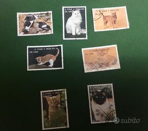 Vendo 7 francobolli della serie gatti di Sao Tome e Principe (la serie è incompleta) nuovi, timbrati, gomma sul retro integra, non linguellati.