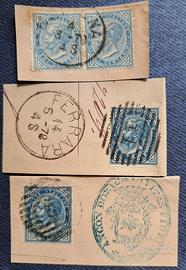 n. 3 francobolli 1879 da cent. 20 su 2 frammenti catalogo Sassone n. 39