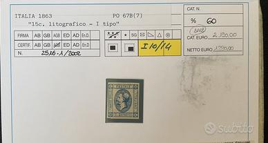 Si tratta del 15 centesimi litografico primo tipo del 1863.