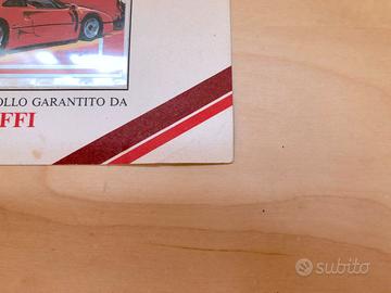 Francobollo originale Ferrari su foglietto marcato Repubblica Federale Islamica delle Comore. Sul francobollo presenti immagini di Enzo Ferrari e del modello Ferrari F1 del 1989. Sul foglietto presenti immagini di Ferrari modello F40, di una locomotiva Red Devil serie "25" e catamarani. Il foglietto è a sua volta imbustato e incollato su cartoncino dimensioni 18,5x14cm. Sul cartonicino è visibile piega sull'angolo inferiore destro e quale piccola macchia quà e la.