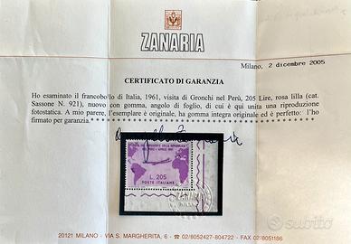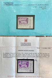 Raro francobollo Gronchi rosa, nuovo con gomma, angolo di foglio. Originale, perfetto con certificato di garanzia.