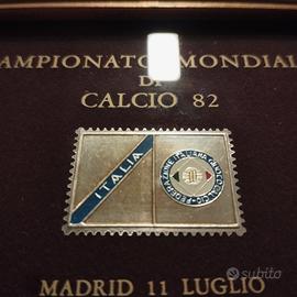 Quadretto con francobollo in argento Italia campione del mondo 1982. Federazione italiana gioco calcio Campionato del mondo di calcio 1982 in Spagna.