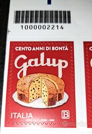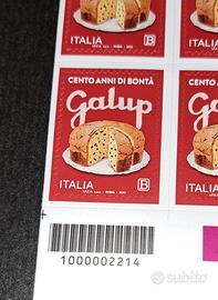 Foglio intero (45 esemplari) del francobollo italiano emesso il 21 giugno 2022 in occasione del 100o anniversario della fondazione della GALUP Srl.