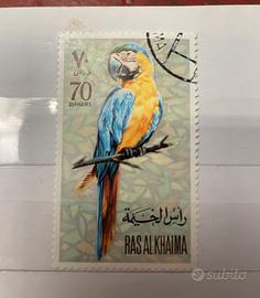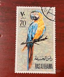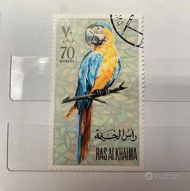 Francobollo originale da 70 Dirhams emesso da Ras Al Khaimah, raffigurante un bellissimo pappagallo Ara dai colori vividi. Perfetto per collezionisti di francobolli tematici dedicati agli uccelli tropicali, fauna esotica o emissioni arabe vintage. Condizioni buone con leggero annullo visibile nell’angolo superiore. #francobolli #stamps #filatelia #rasalkhaimah #vintage #arabstamps #uccelliesotici #ara #parrot #collezionismo #stampscollection #rare