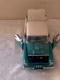 Modellino die-cast di altissima qualità della celebre Pontiac Star Chief del 1955, di Franklin Mint. Questa livrea bicolore turchese e bianco crema incarna perfettamente l'eleganza degli anni '50 americani. CARATTERISTICHE PRINCIPALI Marca del Modellino: Franklin Mint (Qualità Premium per Collezionisti) Anno del Veicolo: 1955 Marca del Veicolo: Pontiac (Modello Star Chief) Colore: Turchese / Bianco crema Parti Apribili: Cofano motore, portiere anteriori e bagagliaio. Dettagli Tecnici: Riproduzione fedele del vano motore dettagliato e del sottoscocca. Condizioni: Ottime condizioni estetiche e meccaniche, come visibile dalle foto. Accessori Inclusi: Il modellino viene fornito con il suo Certificato di Autenticità originale Franklin Mint. Nota: senza scatola originale. DIMENSIONI E PESO scala 1:24 Franklin Mint) Lunghezza: 28 cm circa Larghezza: 11 cm circa Peso: 800 g. Spedizione: Spedizione tracciata in tutta Italia tramite corriere espresso. Il modellino sarà imballato con estrema cura (pluriball, patatine di polistirolo, doppia scatola) per proteggere le parti più delicate come le cromature e le antenne. Ritiro a mano: Disponibile per ritiro in zona.