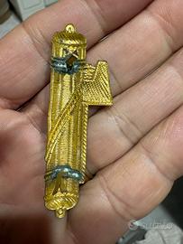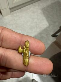 • Soggetto: Un fascio littorio classico, con il corpo dorato e l'ascia (la scure) argentata.