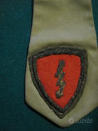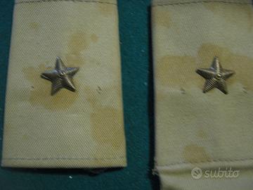 Coppia gradi tubolari "vintage" da SOTTOTENENTE (stellette dorate in metallo) su tela mimetica, di cui uno completo di "cravattino" da spalla con distintivo omerale (in canuttiglia) della Divisione di Fanteria FOLGORE (sciolta il 31 ottobre 1986).