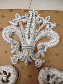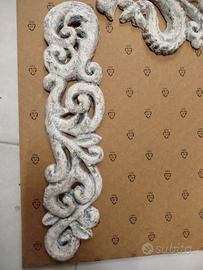 fregio in cemento colorato con vernice effetto shabby .