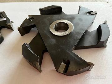 Frese varie per la lavorazione del legno regolabili per canali profondi da 25 a 64 di altezza diametro da 200 - 255 mm a frese da 140 x 80 h e 65h per giunzione a pettine e frese per tondo nuova e tante altre prezzo indicativo da concordare con la richiesta