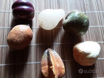 Antico gruppo di 6 frutti di cartapesta,esattamente: 4 sono di cartapesta, 1 di onice rosa,e la susina è di ceramica vetrificata,tutta fatta a mano,oggi divenuta rara!Particolare per materiali e colori, un gruppo davvero ben assortito,tutti in condizioni perfette,come potete vedere dalle foto,dal vivo sono anche più belli.misurano cm 7-7,5circa di altezza ognuno,il diametro varia in base al frutto,la pera misura cm 7,5 di altezza ed è la più grande,se interessati all'acquisto separatamente,basta dirlo,troveremo certo un accordo.Lotto unico, condizioni ottime.Spedisco ovunque,la consegna avviene tra le 24h e i 5 giorni, secondo la formula che sceglierete.