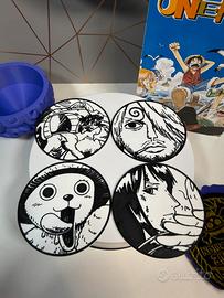 Appassionati di One Piece, ecco il pezzo definitivo per la vostra collezione! Set completo di 12 sottobicchieri artigianali, custoditi all'interno di una replica fedele del frutto del diavolo di Luffy: il Gomu Gomu no Mi. Cosa include il set: • Contenitore Gomu Gomu: Stampato in 3D con il tipico pattern a spirale viola e picciolo verde. Si apre per contenere perfettamente tutti i pezzi. • 12 Sottobicchieri Manga Style: Ogni sottobicchiere raffigura un membro della ciurma o un simbolo iconico (Luffy, Zoro, Sanji, Nami, Chopper, Robin, Brook, Jinbe, Franky, Usopp, la Going Merry e il Jolly Roger). • Qualità Premium: Design bicolore ad alto contrasto (bianco e nero) che richiama le tavole originali del manga di Eiichiro Oda. Dettagli: • Diametro sottobicchieri: Perfetti per bicchieri, tazze e boccali da pirata. • Materiale: PLA resistente e lavabile con un panno umido. • Pezzo Unico: Realizzato e rifinito con cura artigianale, non è un prodotto industriale di massa. Ideale come regalo per amanti degli anime, per arredare la tua postazione nerd o per rendere epici i tuoi aperitivi a tema pirati.