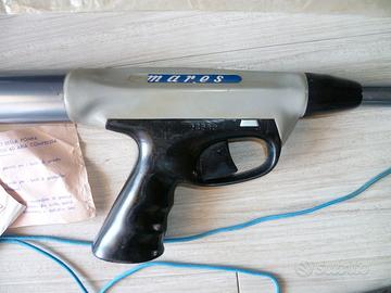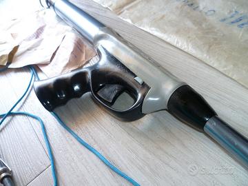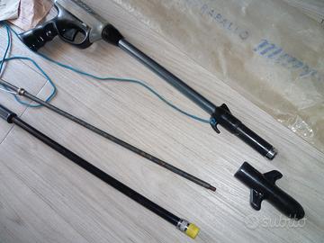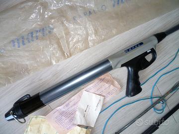 Fucile Sub Mares Vico Tana De Luxe, oleopneumatico da 90 cm, anno 1969, completo di custodia, documenti, asta, sagola e pompa originali, in eccellenti condizioni d’uso, 80 euro
