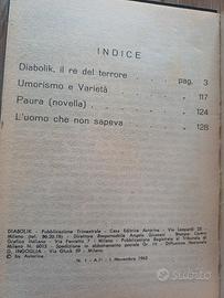Intramontabili fumetti Diabolik misti. Fumetti Diabolik totale numero 345 di cui, N.36 ristampa Swiisss N.154 originali tra cui N.11 numeri 1 di ogni stagione. N.82 R rossa N.63 R bianca N.10 Best seller Tra tutti questi N.2 fumetti prima edizione "Il Re del terrore"