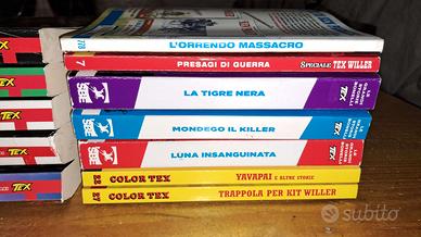 Come da titolo inserzione vendo questo lotto / blocco di fumetti vari composta da 16 albi in totale. Nel lotto sono presenti in particolare i numeri 38, 39, 40 e 41 della serie Albo Speciale di Tex (Sergio Bonelli editore), 5 numeri di Maxi Tex, altri 3 numeri di Tex Le Grandi Storie Bonelli e 2 numeri di Tex Color (22 e 27), un numero Speciale Tex Willer incontra Zagor (7) e il numero 778 della storica serie Tex Gigante. Le loro condizioni sono ottime, fumetti praticamente come nuovi e perfetti. Un paio di numeri presentano una leggera piega della loro forma naturale poichè tenuti chiusi in uno scatolone. Vedi comunque attentamente tutte le foto! Vendo solo ed assolutamente tutto assieme e nulla separatamente, il lotto è indivisibile! Vera occasione per amatori e collezionisti del genere. Per l'oggetto è previsto il ritiro in zona Rovereto (Trento) con conseguente pagamento alla consegna. In alternativa posso effettuare la spedizione tramite posta o corriere sicurissimo e tracciabile al costo di euro 10 (spedizione + imballaggio). Sono disponibile per ogni vostra eventuale domanda e per inviarvi, qualora lo desideriate, un archivio completo di foto dettagliate dell'oggetto. Info anche per telefono o whatsapp: 328-5765428