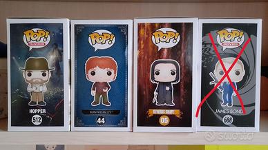 Vendo come nuovi, estratti dalle relative scatole solo qualche volta, perfettamente conservati, i Funko Pop nr. 05 (Severus Snape), 44 (Ron Weasley), 512 (Hopper) a 15 Euro cadauno non trattabili. Consegna a mano in zona Verona o spedizione tramite Poste Italiane. Solo per collezionisti interessati, no perditempo grazie. Edoardo