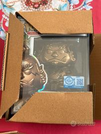 Vendesi in lotto gli ultimi due Funko Pop! Plus del 25° Anniversario di One Piece in versione bronze e limited edition. La serie termina con i numeri 2215 appartenente a Brook e 2216 appartenente a Jinbe. Le statuette in vinile sono alte circa 15 cm.