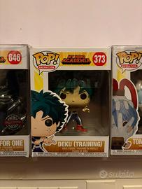 Si possoni acquistare anche da soli ma in tre faccio sconto Metto in vendita questo lotto di 3 Funko Pop originali della serie My Hero Academia, perfetti per collezionisti. Le scatole sono in ottime condizioni e i Pop sono sempre stati tenuti al riparo da polvere e luce solare. Il lotto comprende: • Deku (Training) #373 • Tomura Shigaraki #565 (Special Edition - bollino argento/nero) • All For One #646 (Special Edition - bollino argento/nero) Inclusi i 3 protettori in plastica come visibili in foto, già montati, per garantire la massima protezione.