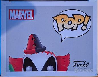 NUOVO. Appartenente alla linea Marvel dedicata al celebre mercenario Wade Wilson. Questa versione specifica raffigura Deadpool travestito da clown, con il tipico trucco bianco e nero sopra la maschera rossa, un colletto a volant e una pistola fatta di palloncini gialli tra le mani. Si tratta di una "bobble-head", ovvero una statuetta con la testa montata su una molla che oscilla al tocco.