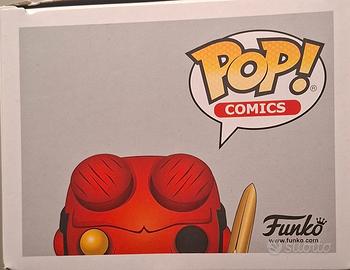 Funko Pop! di Hellboy, specificamente la versione tratta dai fumetti della linea Pop! Comics, identificata dal numero 14. Si tratta di un'edizione "Exclusive", come indicato dal bollino argentato sulla scatola, che ritrae il celebre demone rosso mentre impugna Excalibur, la leggendaria spada dorata.