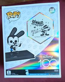 Funko POP! Disney 100 - Oswald The Lucky Rabbit #08 Figura in vinile di Oswald il coniglio fortunato, parte della collezione Disney 100th anniversario. Dietro la figura c'è un poster del cortometraggio Rival Romeos. Nuovo nella scatola originale sigillata.