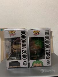 Due Funko Pop! di Roronoa Zoro dalla serie One Piece. - Funko Pop! Animation 1775 Roronoa Zoro (con adesivo Limited Chase Edition). - Funko Pop! Animation 923 Roronoa Zoro.