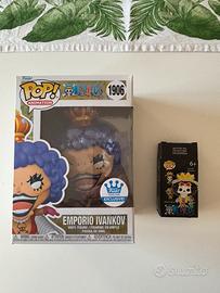 Vendo la mia pop pin di one piece di brook accoppiata al Funko pop one piece Emporio Ivankov #1906 funko exclusive, senza hard protector.
