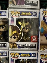Serie completa dei 10 cavalieri con le 5 armature di bronzo e le 5 armature d’oro + Saori Kido (Lady Isabel nella serie tv) in versione rara Diamond Exclusive! Incluso anche Seiya di Pegasus raro con l’armatura del Sagittario in versione Exclusive.