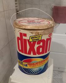 vendo fustino vuoto detersivo rotondo dixan anno 1984 , altezza 32 cm, diametro 23 cm, euro 55 , consegna a mano a Moncalieri, non spedisco