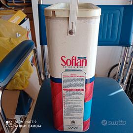 Vendo simpaticissimo fustino di detersivo Soflan risalente agli anni 80 e recante le immagini pubblicitarie di Snoopy ed i Peanuts, che rappresentavano il regalo dentro il contenitore.