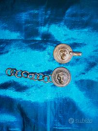 Coppia completa, per mantella G. I. L in metallo del peso di circa 30 gr. con presenza ancora di tracce di tessuto nero della mantella . Medaglione diametro di 30 mm. Ottimo stato di conservazione. Spese a carico del destinatario.