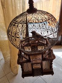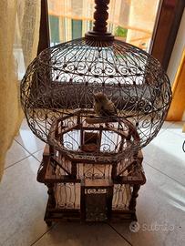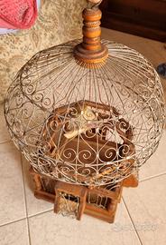 Gabbia uso decorativo o per illuminazione, legno e metallo Vintage anni 50 . gabbia con uccellino decorativo da collezione . Prezzo Accetto offerte e valuto .