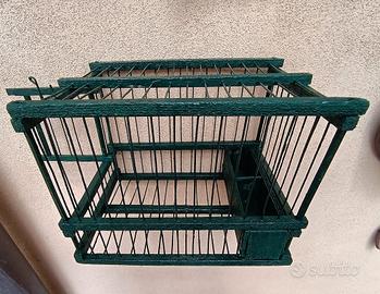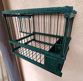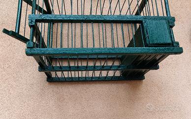 Vecchia Gabbietta per volatili in legno, anni '50. Usata a suo tempo per uccelli da richiamo nella caccia da postazioni fisse. Tutta originale. Recuperata in pessime condizioni, é stata ripulita, accomodata e riverniciata. Bellissima, da esterno e interno in arredo rustico.