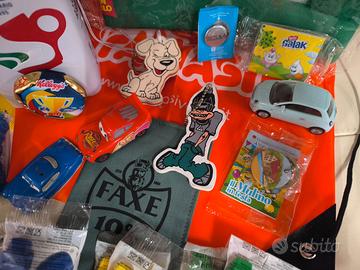 Vendo gadget originali anni 2010 provenienti da merendine e snack (le classiche “sorpresine” delle brioches), perfetti per collezionisti o nostalgici. Nel lotto sono presenti oggetti brandizzati Chupa Chups, Nestlé e Lavazza, tra cui: Zaino Chupa Chups €5 Gadget e sorpresine sigillate (Cococannuccia Kellogg’s 4 - Baci Perugina - Nestelè - Mulino Bianco - Galak - Estathè) Piccole automobiline - Cars McQueen Doc Hudson - 500 Baci Perugina Contenitore/box Lavazza anniversario Contenitore ghiaccio estathè Faxe - Rizla+ - San Carlo - Gadget vari da collezione (alcuni mai utilizzati) Condizioni miste: molti articoli sono nuovi/sigillati, altri in buono stato considerando l’età. Ideale per chi colleziona sorpresine vintage o ama gli oggetti anni ’90.