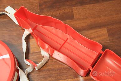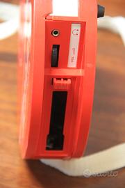 Walkman mangianastri con tracolla e porta musicassette a forma di bottiglia.