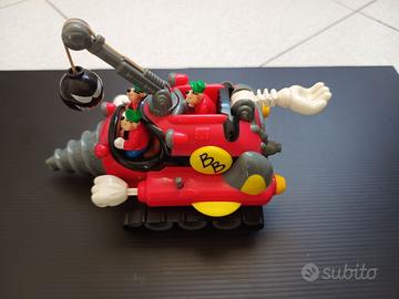 Gadget topolino -Trivella Banda Bassotti- Ruote cingolate più luci funzionanti con pile (non incluse) spara pugni uno non rimane inserito bene.
