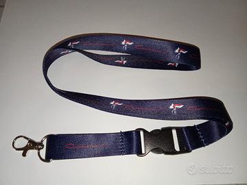 Gadget dell'Arma dei Carabinieri, portachiavi/porta tesserino a laccio con moschettone in metallo con logo e scritta Carabinieri. L'articolo misura 56 cm di lunghezza. Nuovo,come da fotografie allegate.