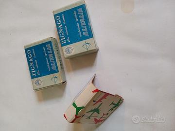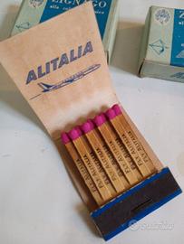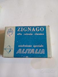 Gadget pubblicitari compagnia aerea ALITALIA anni 50/60. 2 saponette monouso e una confezione di fiammiferi. Compare ancora il vecchio logo ALITALIA. Vendo in blocco a collezionista euro 20.
