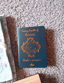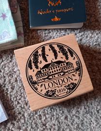 Gadgets box Loonari per Una ragazza d'altri tempi di Felicia Kingsley in ottime condizioni. Sono presenti un passaporto letterario, un porta pastelli o matite, una saponetta handmade al profumo di menta e liquirizia che caratterizza Reedlan Knox, un timbro dedicato alla Londra del 1816 e un set di post-it lilla con le iniziali di Rebecca Sheridan. Presente sacchetto originale.