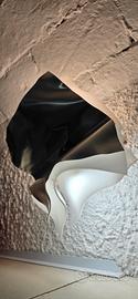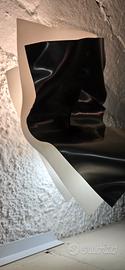 Bellissima e rara applique primi anni '70 composta da tre fogli di metacrilato bianco latte e due di alluminio sovrapposti e piegati a formare una scultura luminosa di forma unica. Impianto elettrico originale dell epoca con due portalampadine mignon. Su richiesta invio foto dei dettagli. Ottime condizioni di conservazione nonostante il tempo e il calore delle lampadine ad incandescenza dell epoca non presenta parti sciolte o rotte. Misure 30cm x 30 cm x 10 cm. c.ca Spedisco in Italia solo con corriere espresso DHL assicurato o corriere di fiducia dell acquirente. Consegna anche a mano su Roma zona Parioli