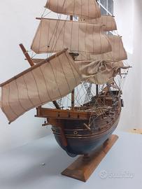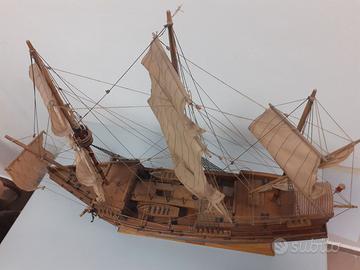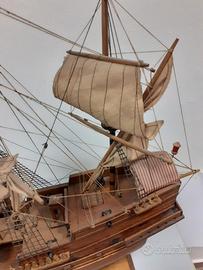 Galeone in legno SAN FERNANDO ottimamente conservato con vele ,sartie, cannoni e scialuppe .Molto scenografico ,ottimo come soprammobile . Dimensioni lunghezza 65cm , altezza 55cm ,larghezza 12cm