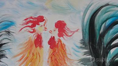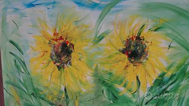 "Galli in combattimento" "vele sul mare" "Girasoli" di Tommaso RUSSO - Dipinti a olio/tela, 70 cm x 100 cm Acquistati dall' Autore a Marzo 2017, vendita singola o in blocco (40 euro singolo, 100 euro/3 quadri) insieme ad altri quadri (disponibili per vendita, firmati in retro)