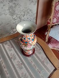 vaso cinese d'epoca, royal satsuma, decorato a mano, con base in legno. misure: altezza: 22 cm , diametro massimo 10 cm contattare il 3496910997