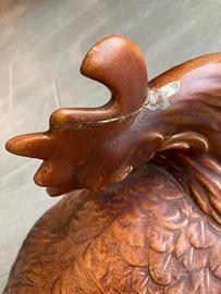 n.1 pirofila a forma di gallina MANCIOLI - originale anni '70 - porcellana da fuoco (solo per forno) - serie RUSTICANA - dimensioni: lunghezza 26 cm, altezza 26 cm, peso 1,2 kg - N.B. cresta rotta e riparata CON COLLA (NON TESTATA NEL FORNO)