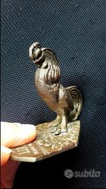 Bella statua/ statuetta di un gallo (galletto) , in bronzo (o ottone), ricordo della seconda "gran marcia dul Galett", Jerago (Varese) 25 Aprile 1973, in buone condizioni.